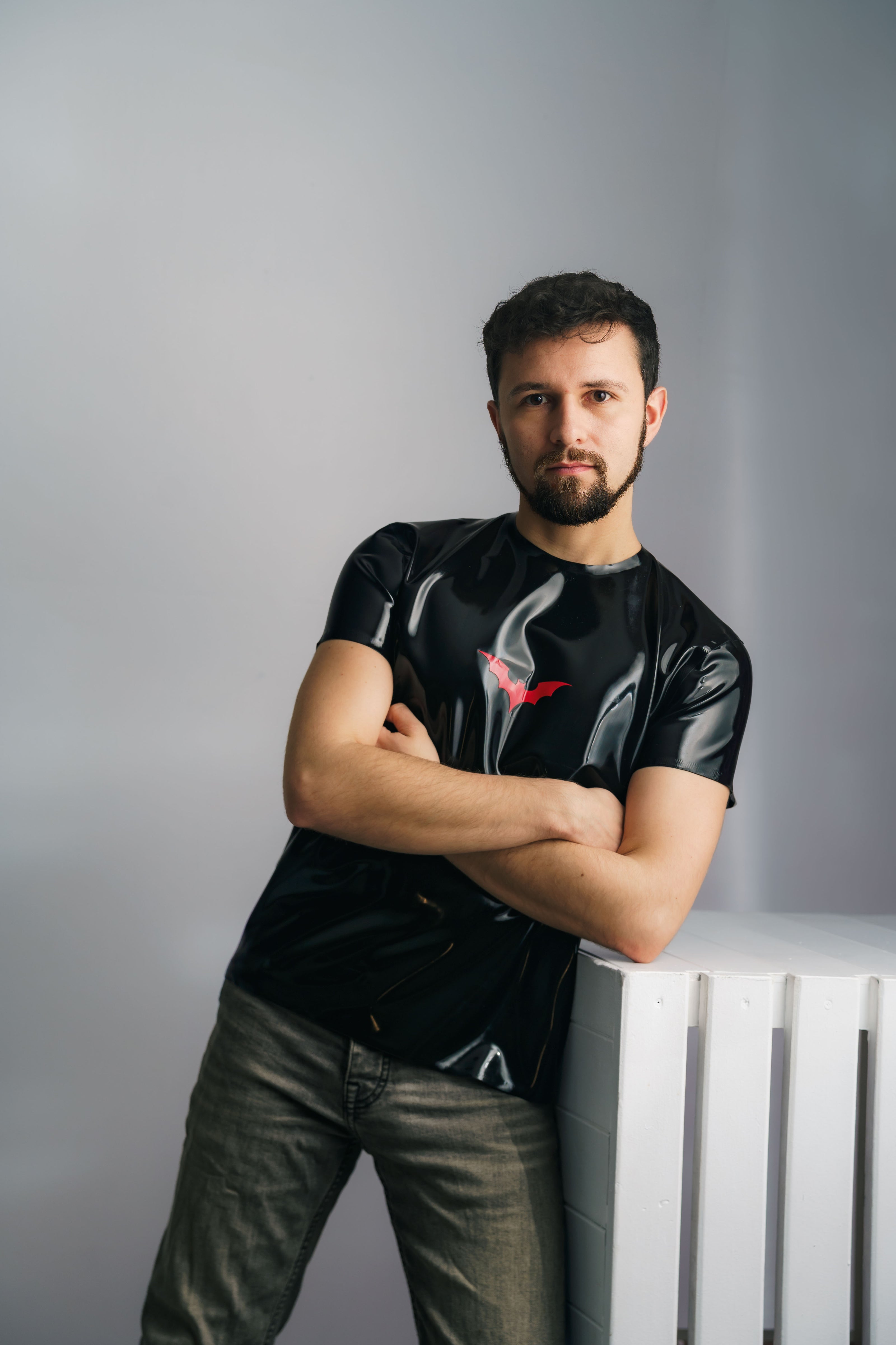 Latex is often stored with a light layer of talc to stop it sticking to itself and to protect the surface in transit. Once you’ve tried your item on and checked the fit, you can wash it to remove the talc and then shine it using your preferred method.